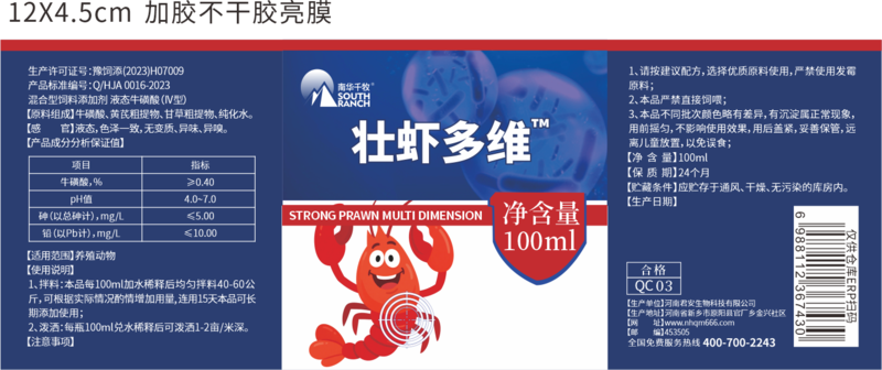★千牧壮虾多维100ml瓶